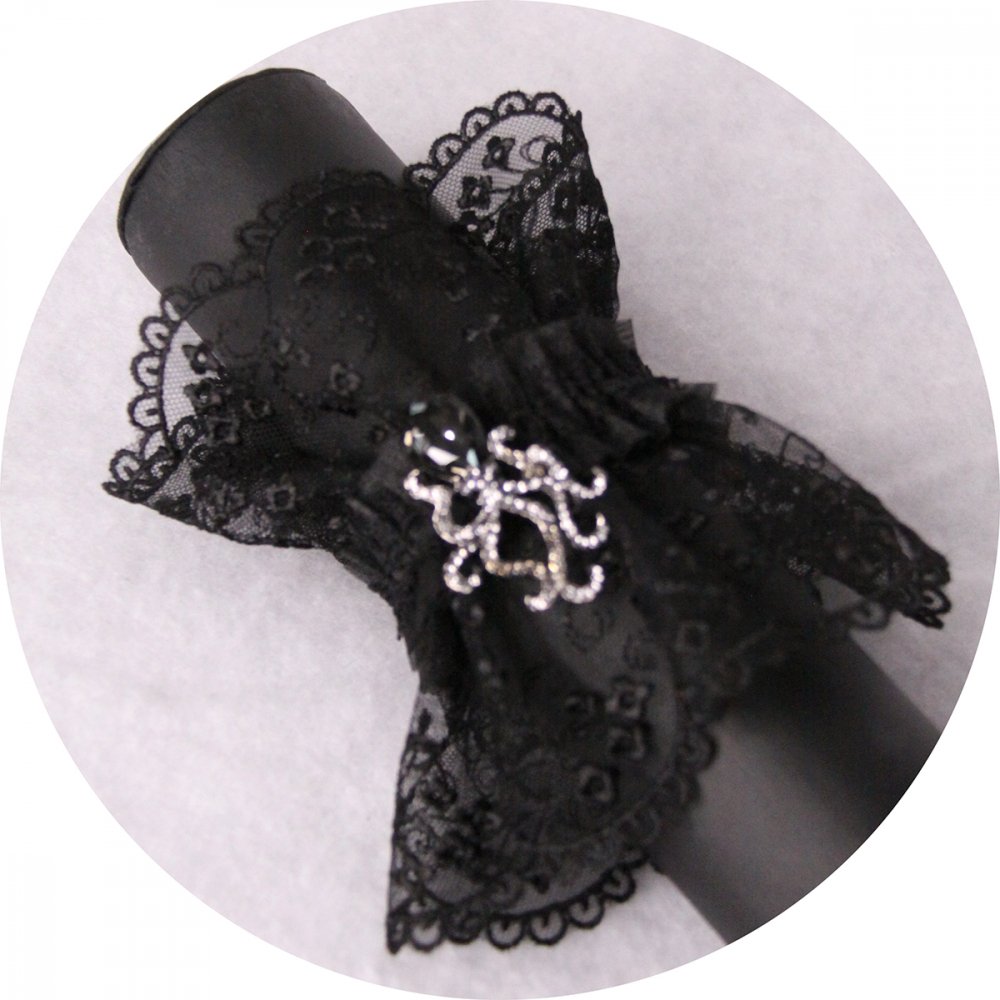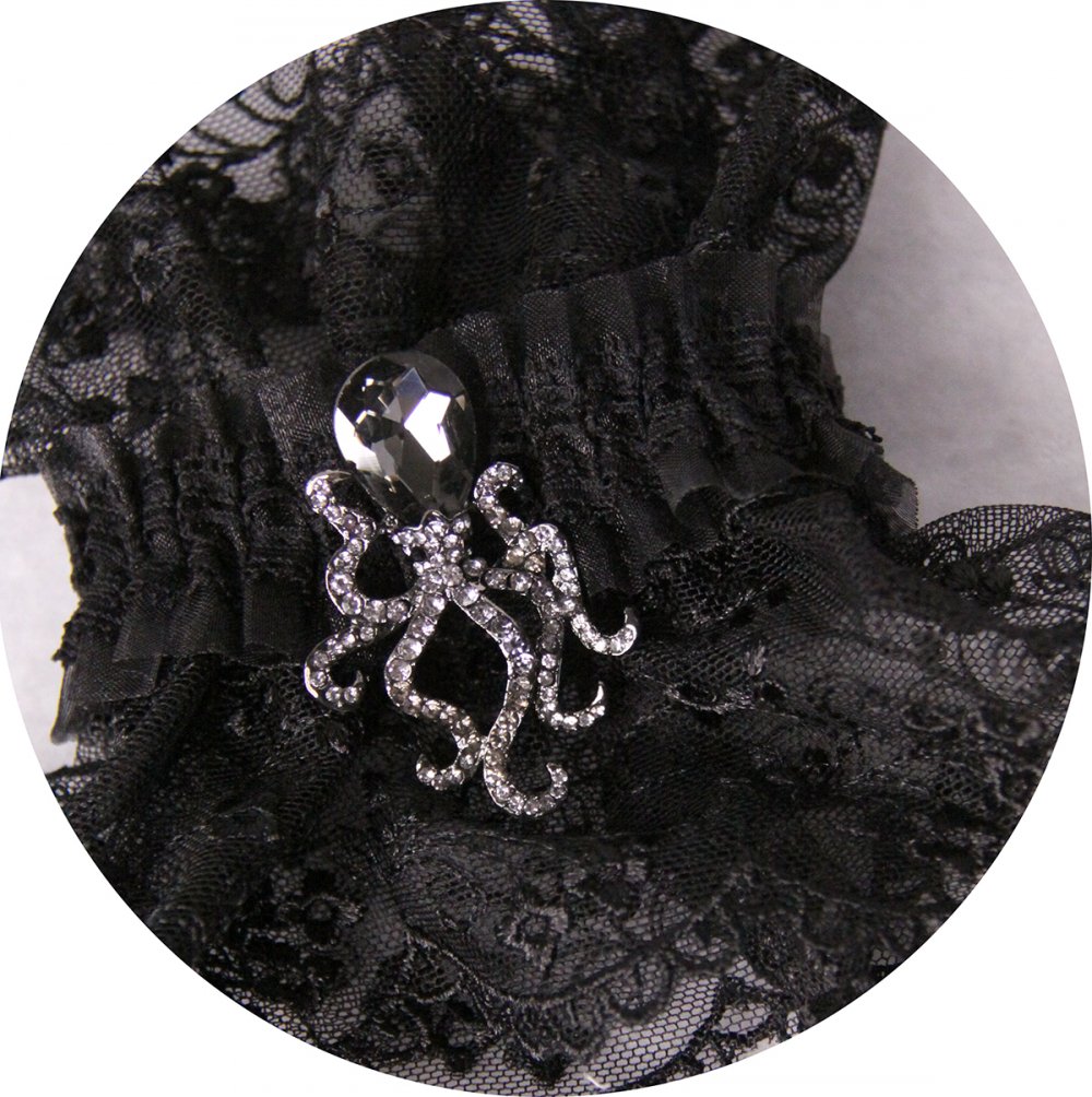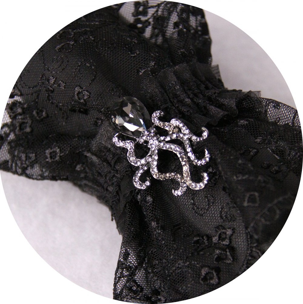 Bracelet manchette steampunk victorien en dentelle noire et broche pieuvre