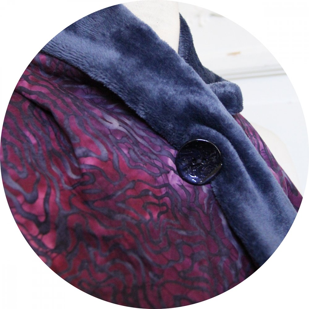 Col bleu et violet en batik et fourrure polaire bleu jean.