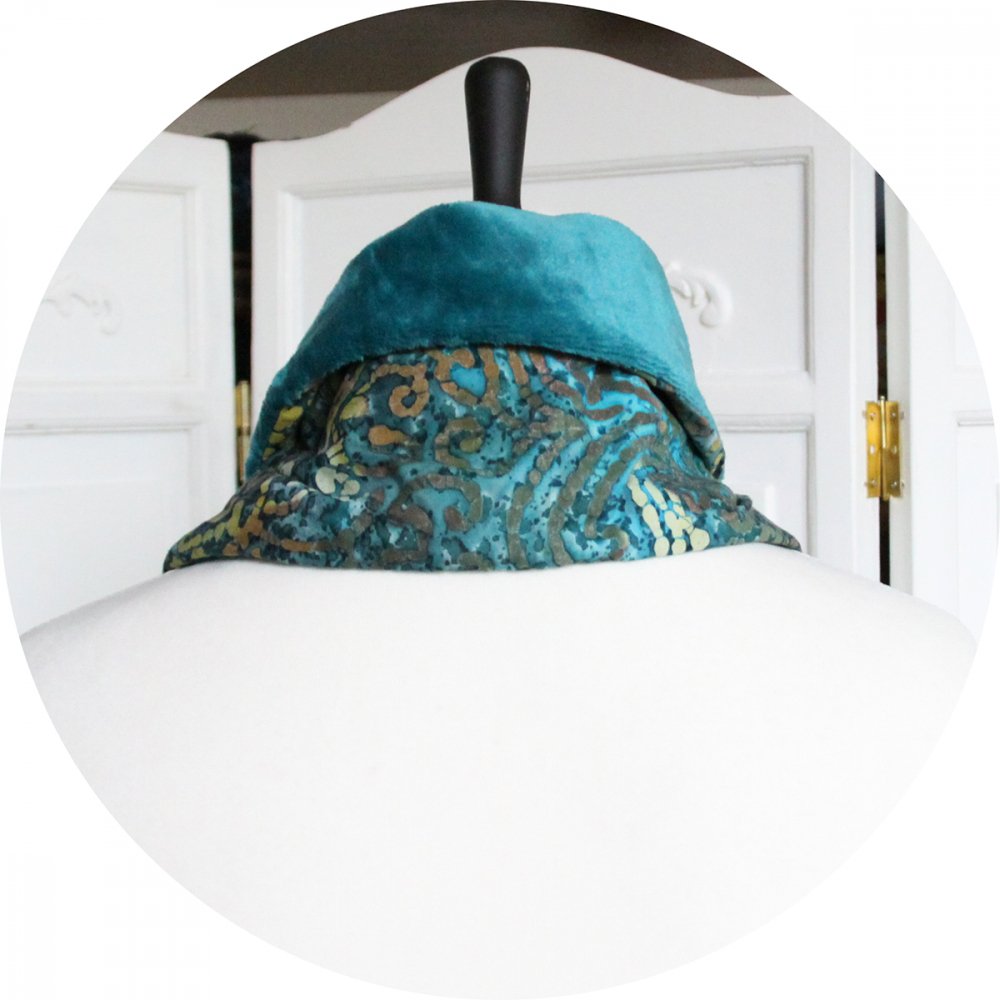 Col bleu turquoise en batik et fourrure polaire bleu pétrole.