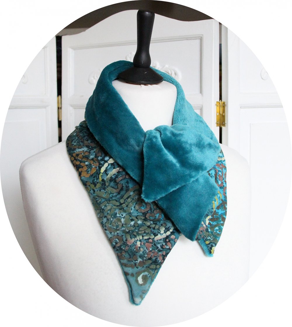Col tour de cou bleu vert en batik et polaire bleu pétrole