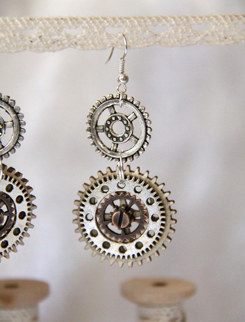 Une paire de boucles d'oreilles assez discrètes pour être portées tous les jours et assez originales pour compléter une tenue steampunk.