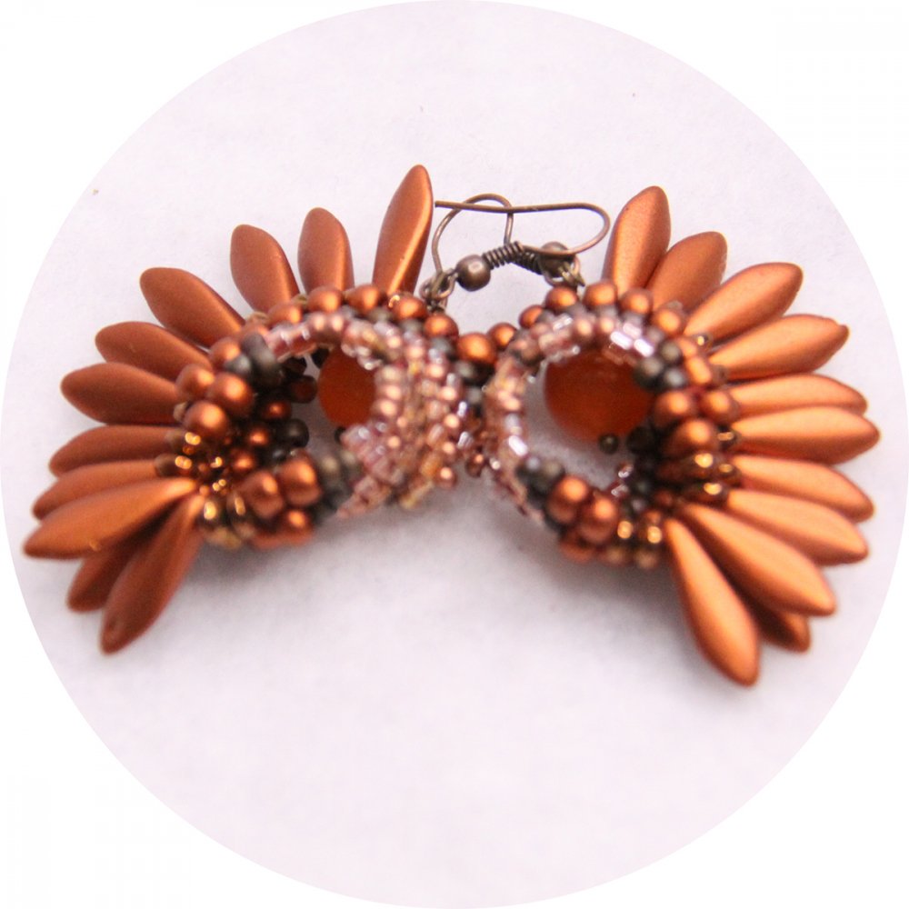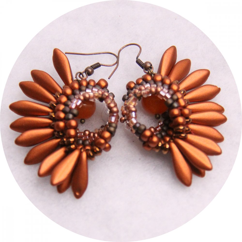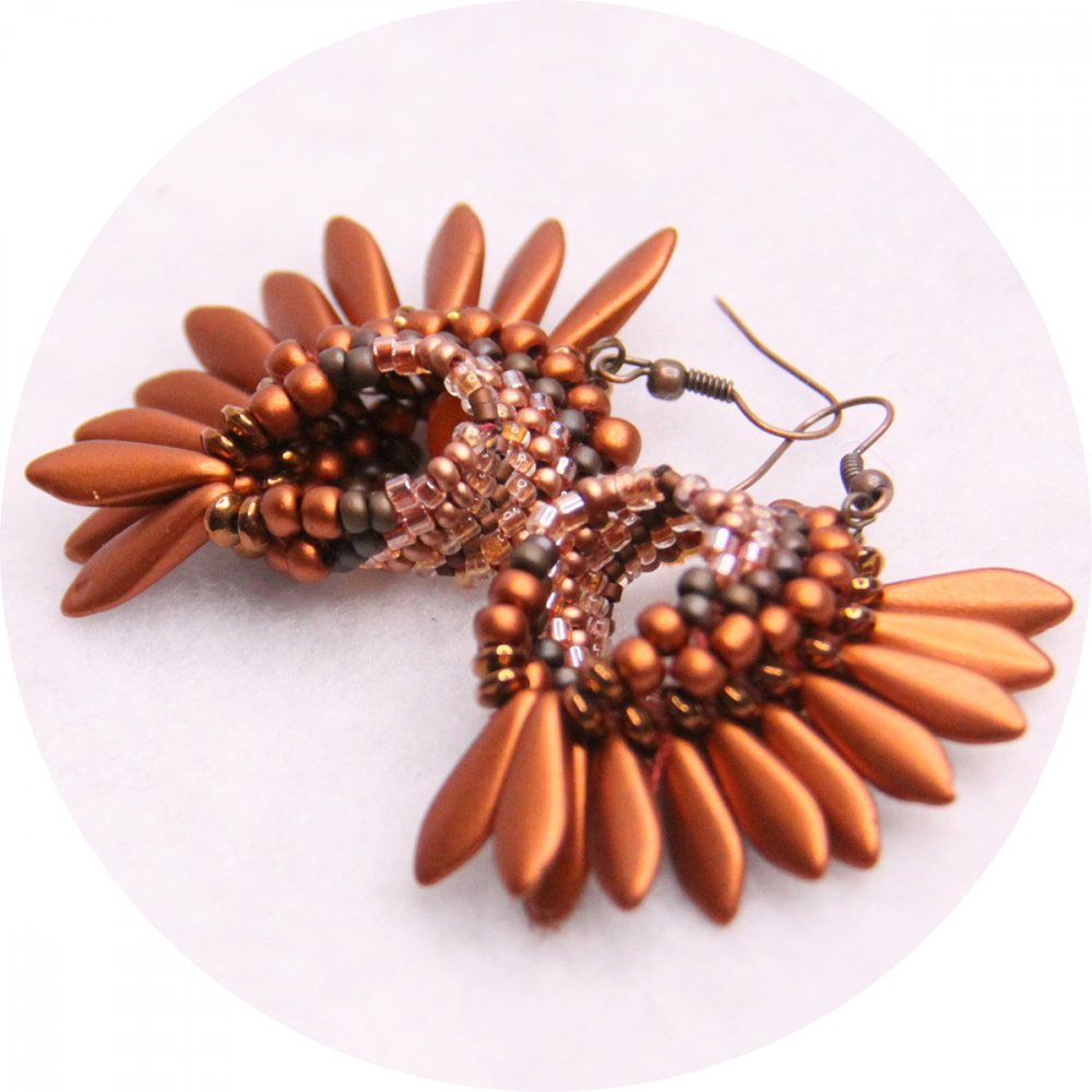 Boucles d'oreilles éthniques en perles tissées orange cuivre.