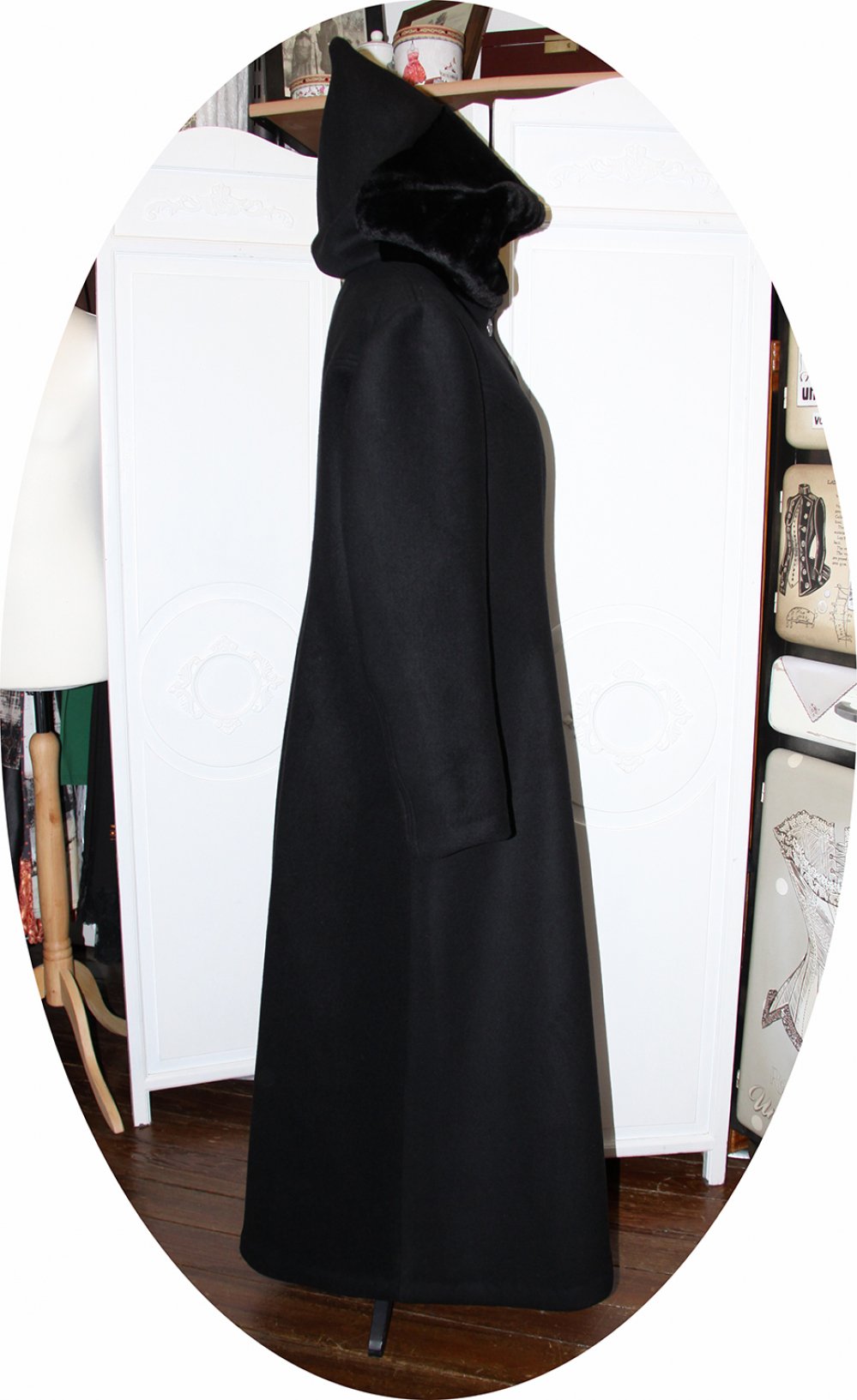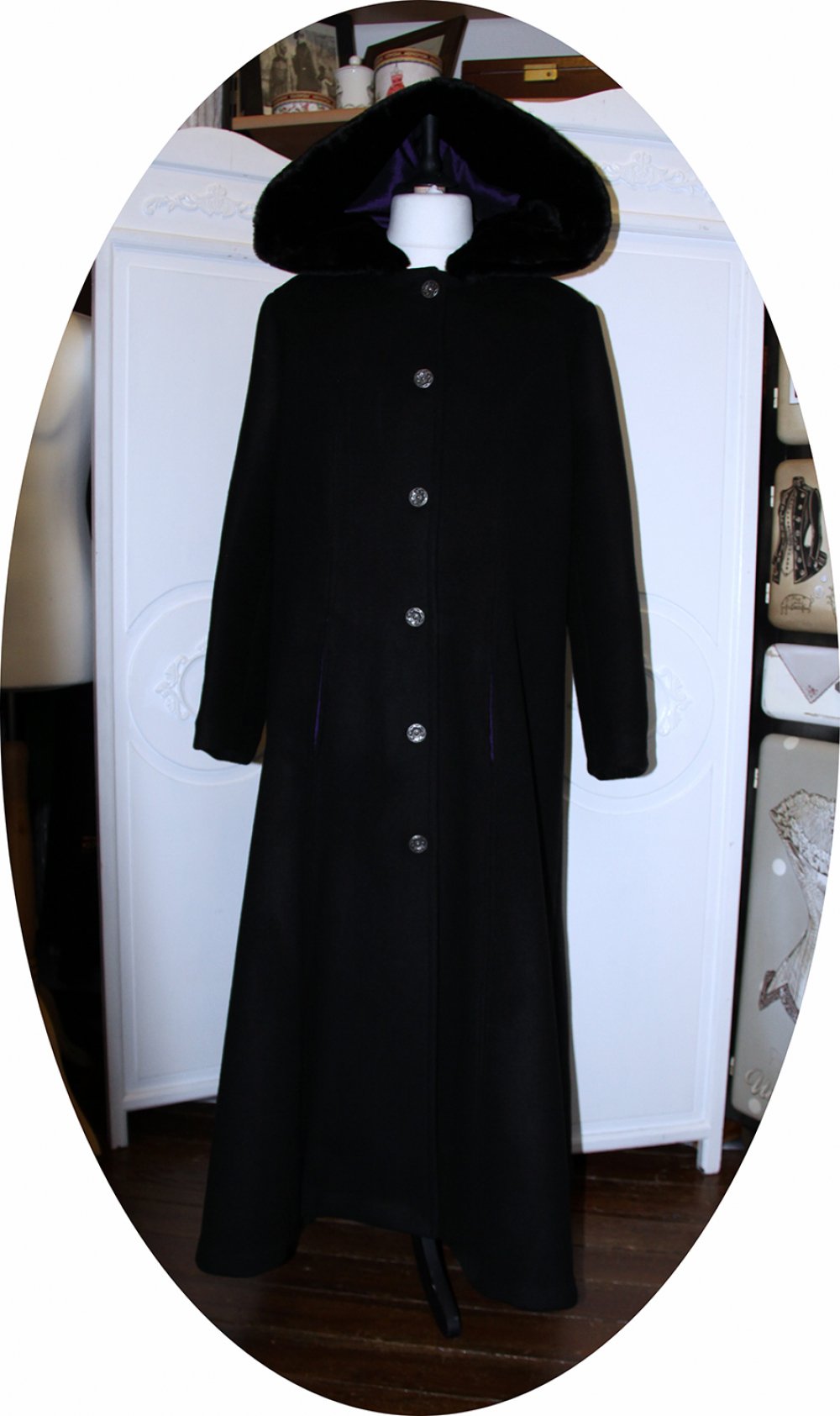 Avec capuche ample bordée de fourrureManches longues évasées ou droitesDécoupe princesse, cintré à la tailleDoublure complèteD'après nos échanges