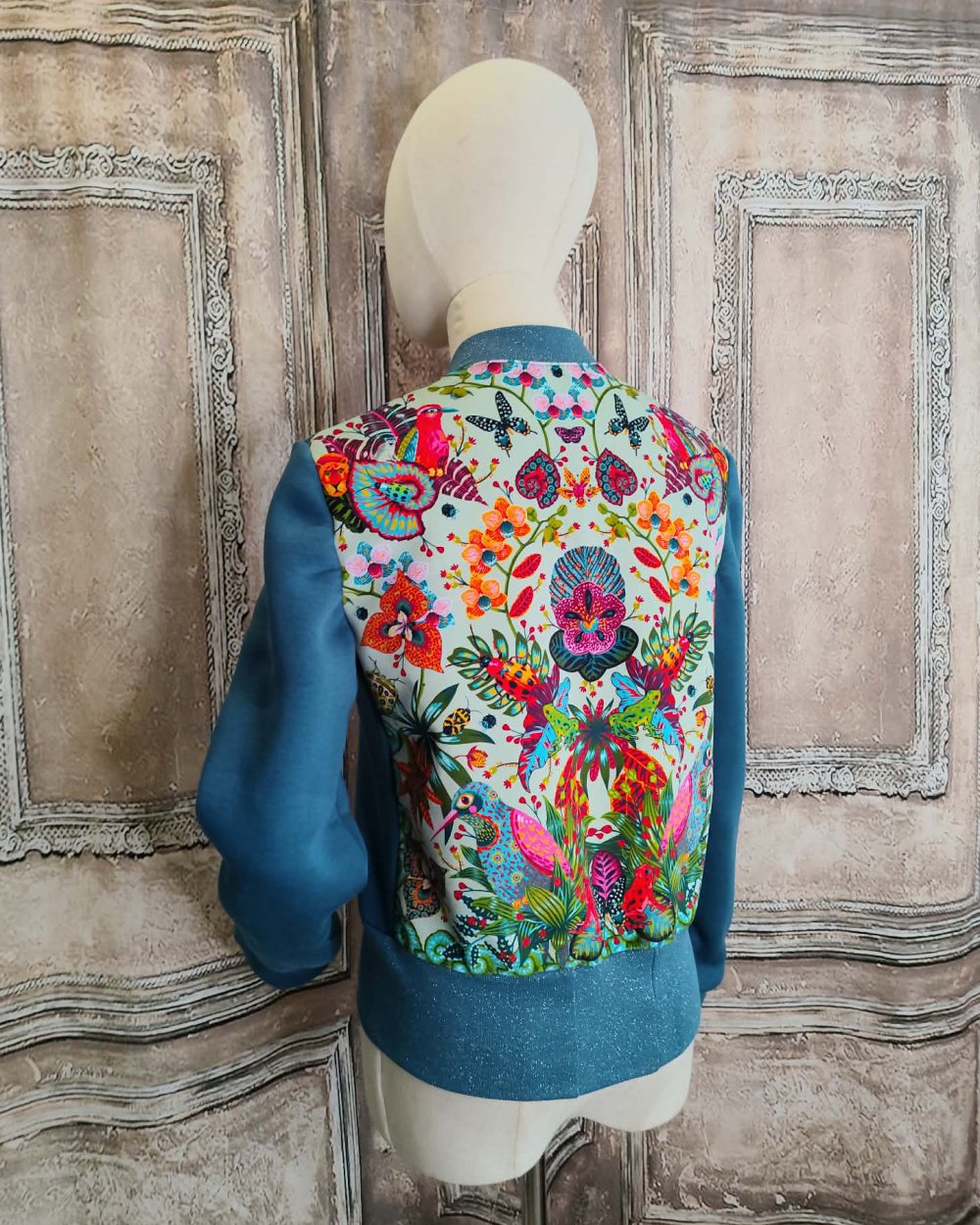 Blouson bomber Oiseau du Paradis bleu et vert