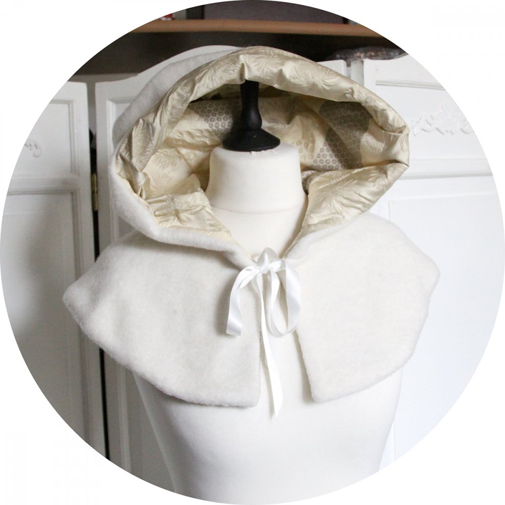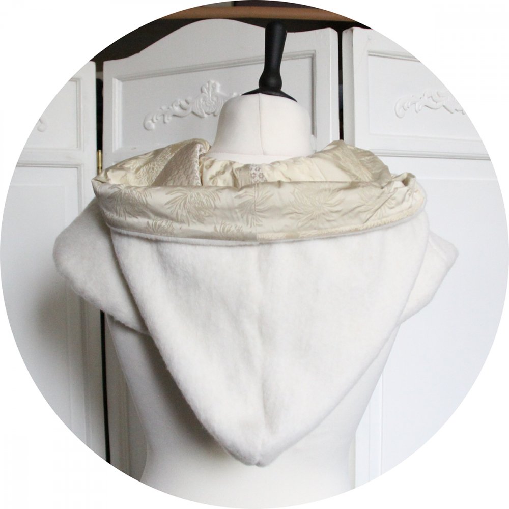 Capeline à capuche Le Petit Capuchon en laine ivoire doublure brocard crème