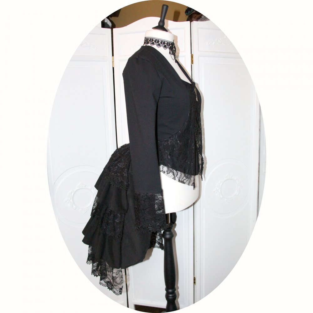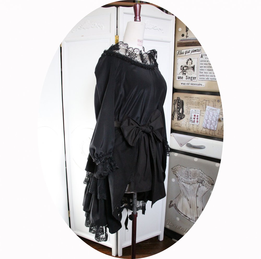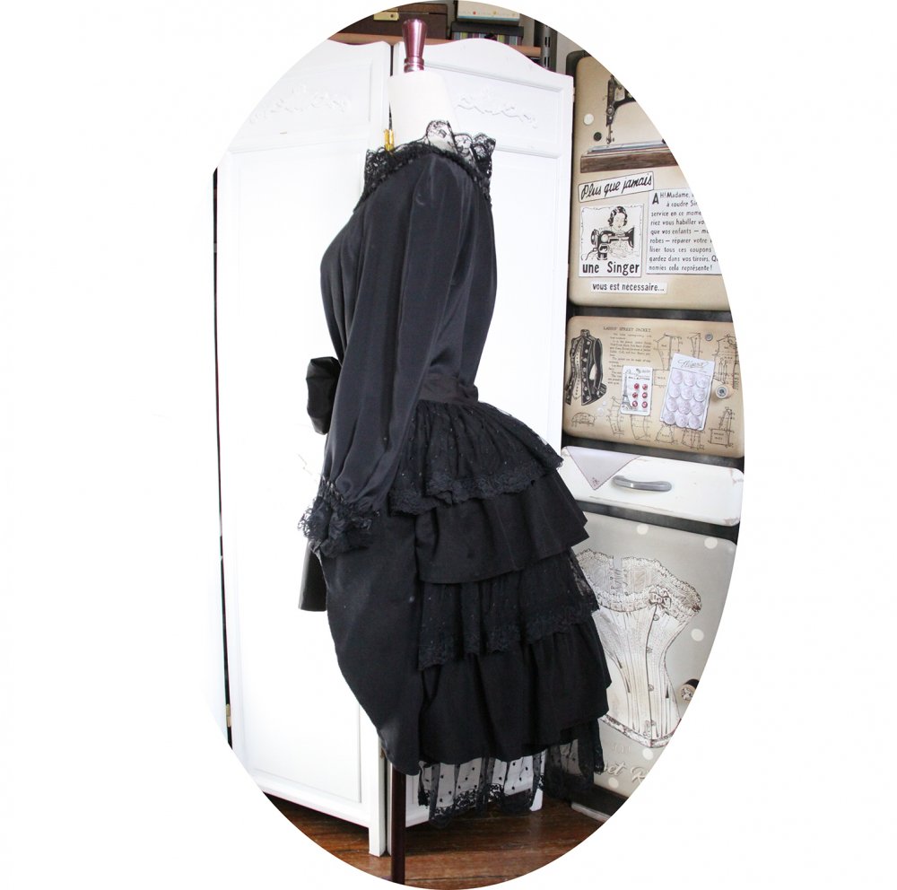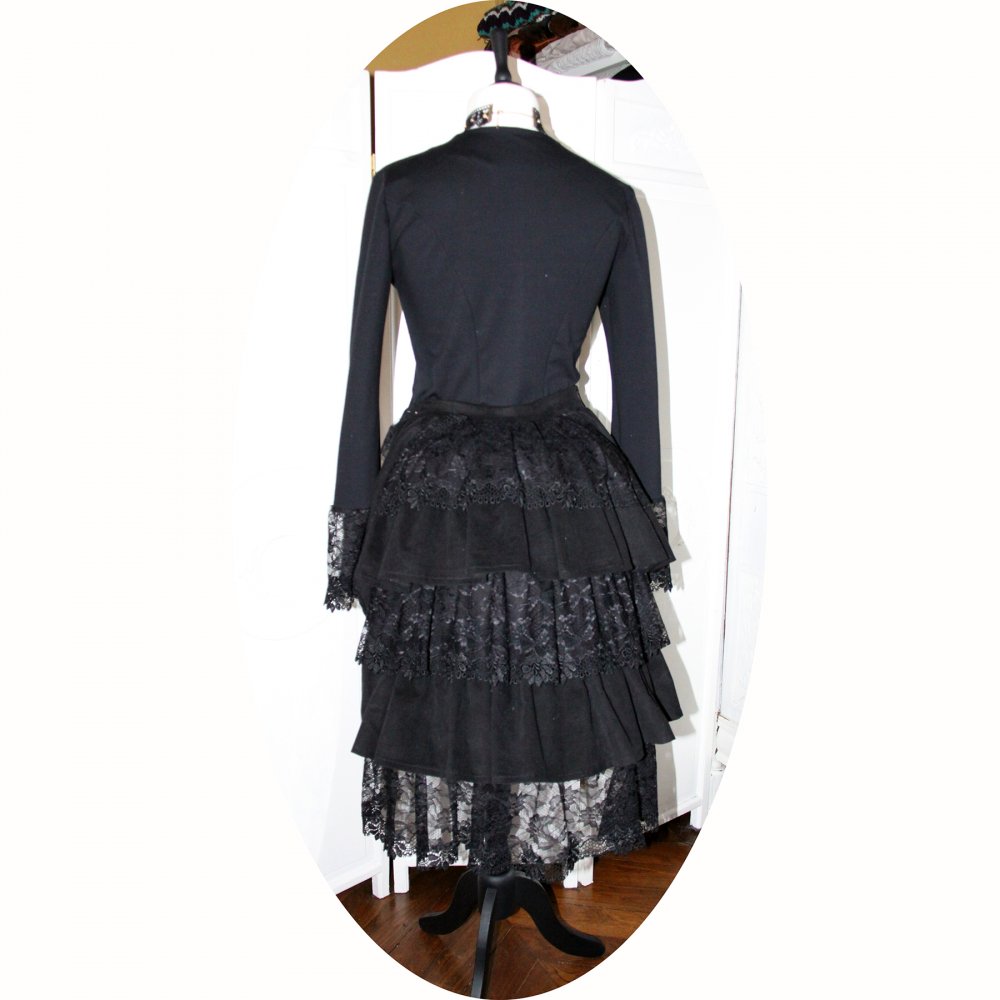 Tournure Steampunk Victorienne en velours noir et dentelle noire.