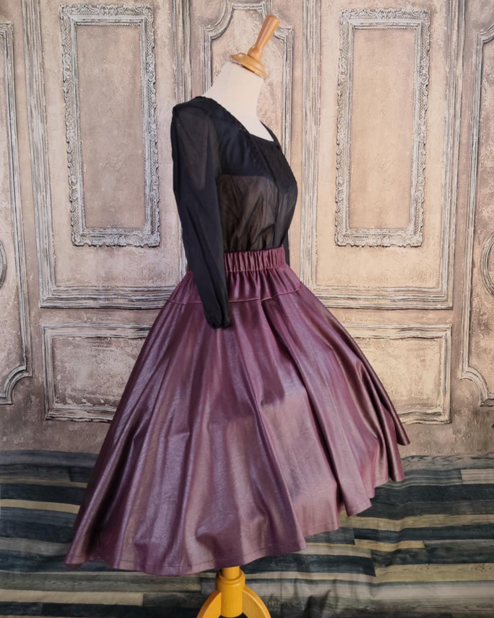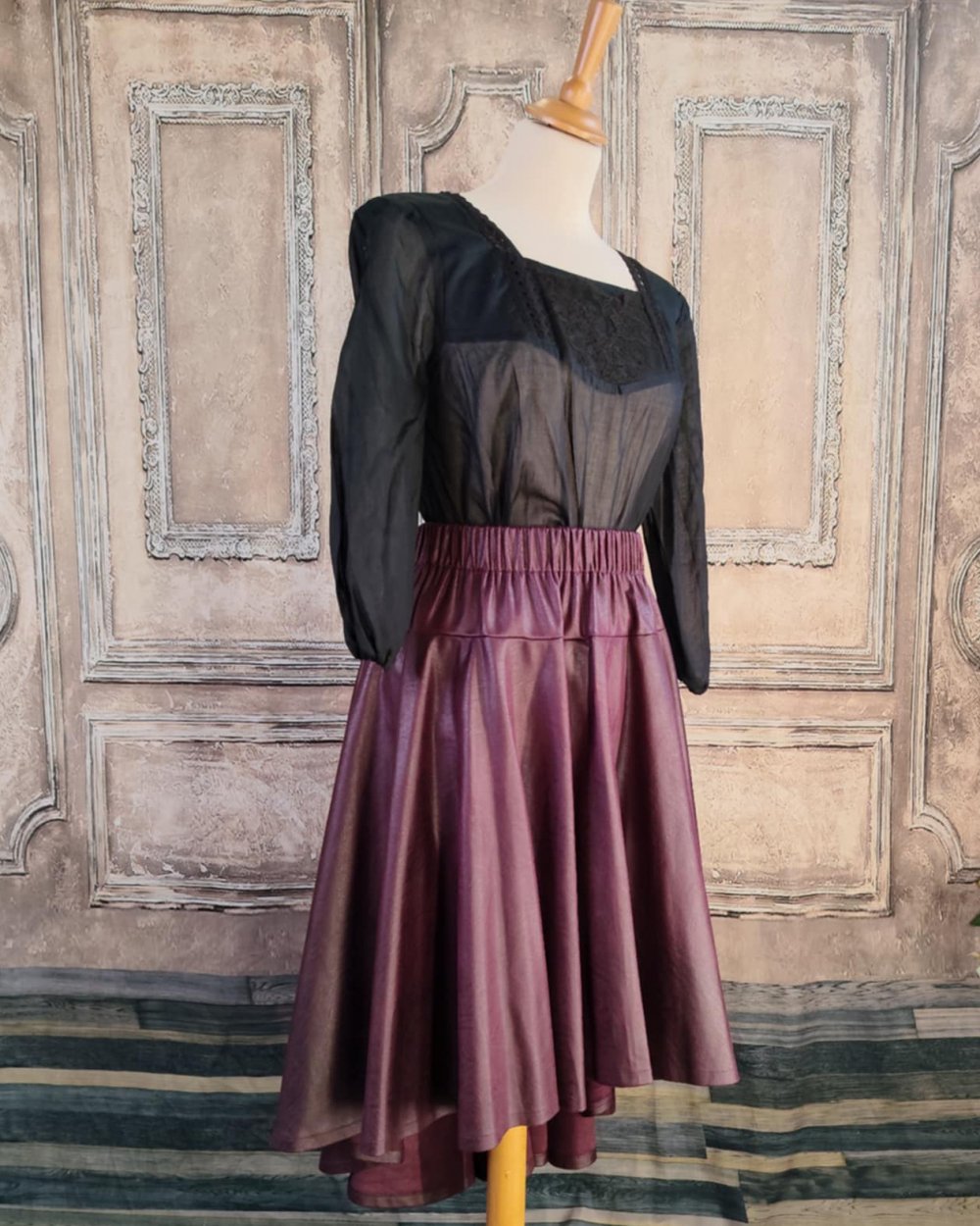 Elle est coupée en cercle pour une belle ampleur et un beau tombé en plis souples. Elle s'enfile facilement grace à sa taille élatiquée.