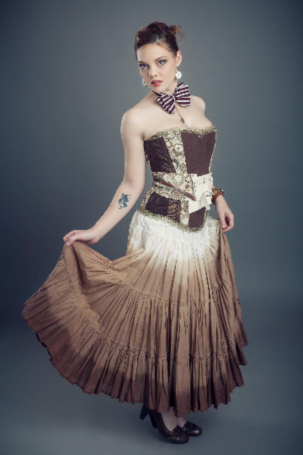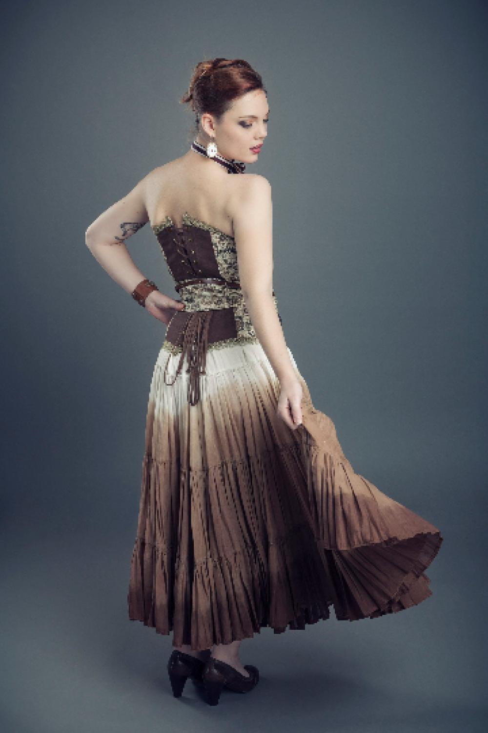 La gamme des produits proposés va de pièces simples et faciles à porter (jupes, robes, hauts, manteaux) aux pièces plus travaillées et spécifiques telles que corsets et robes de mariées, en passant par les colliers et étoles assortis. Chaque modèle unique ou en mini-série est entièrement imaginé et réalisé par mes soins.