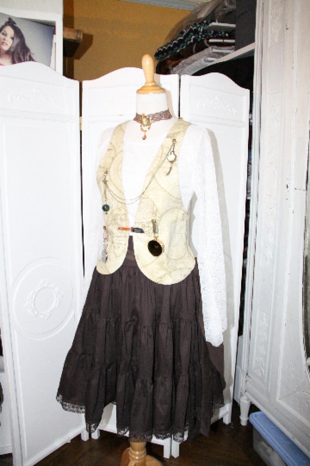 Une jupe simple et confortable, en coton marron stretch, à porter seule ou pour compléter un costume Steampunk.
