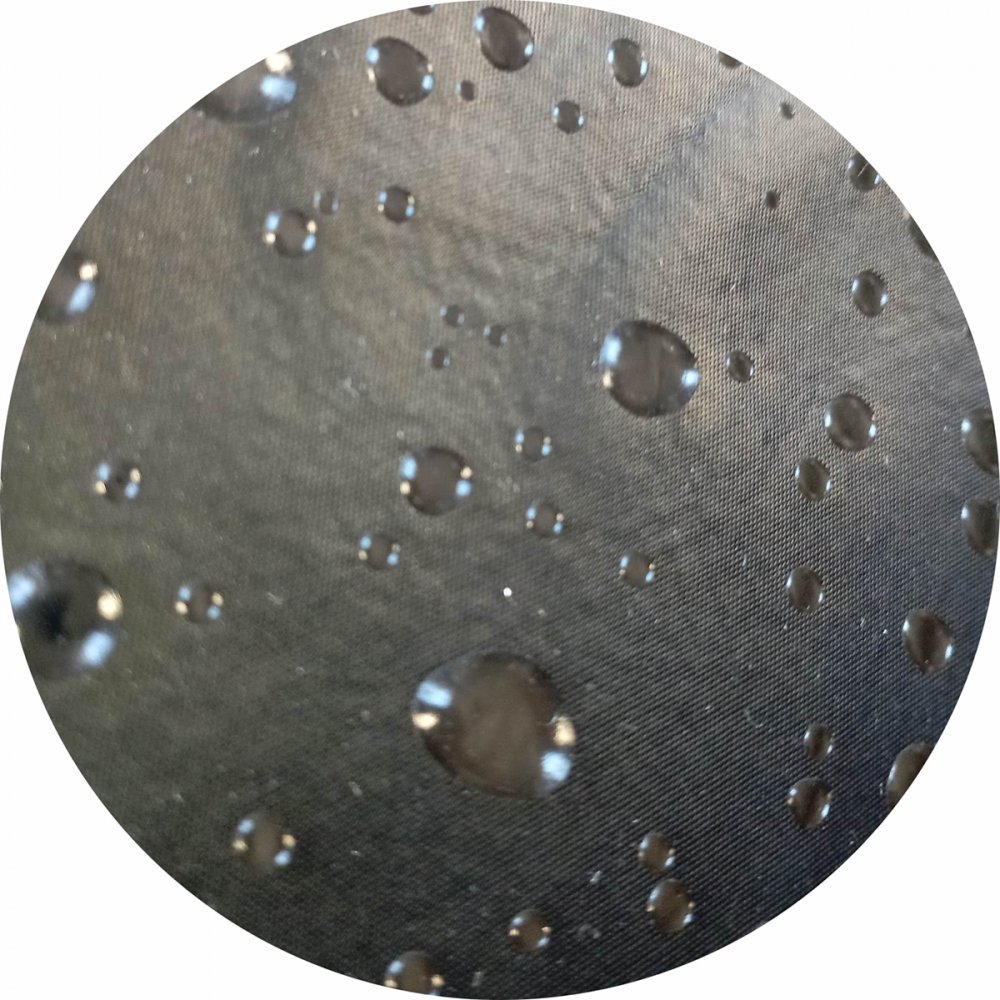 Manteau de pluie mi long imperméable en textile softshell noir effet goutte d'eau.