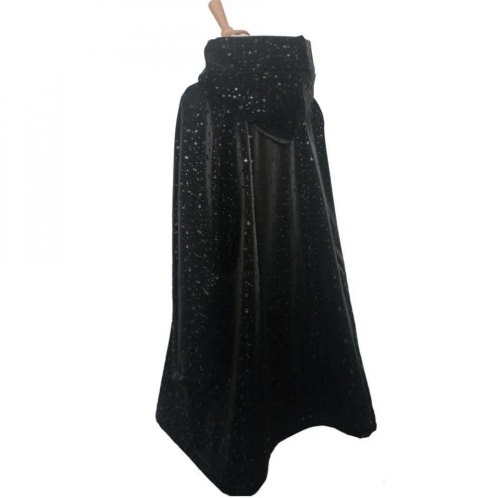 J'ai choisi une base trapèze avec de longues manches, une capuche et des poches. Cet imperméable noir est bien couvrant pour garder le haut des jambes au sec. Il se ferme par une rangée de boutons pression noirs sur l'avant.