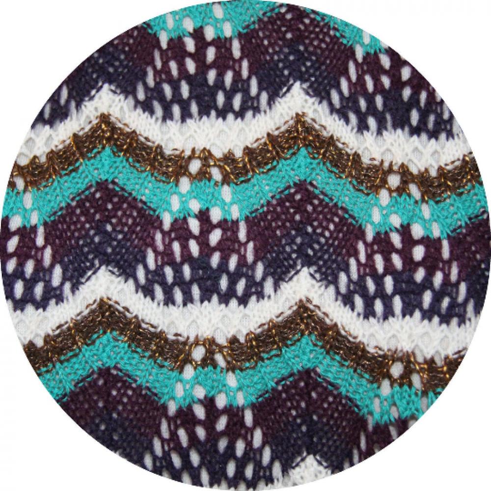 Poncho cape en maille coton ajourée bleu vert violet blanc motif vagues