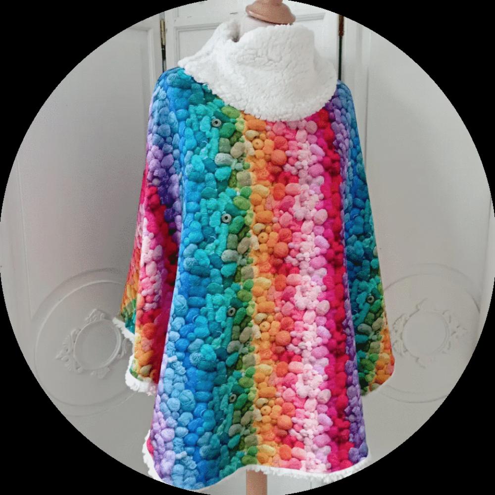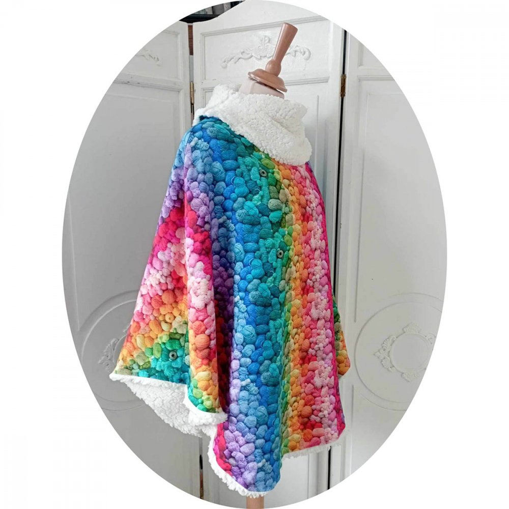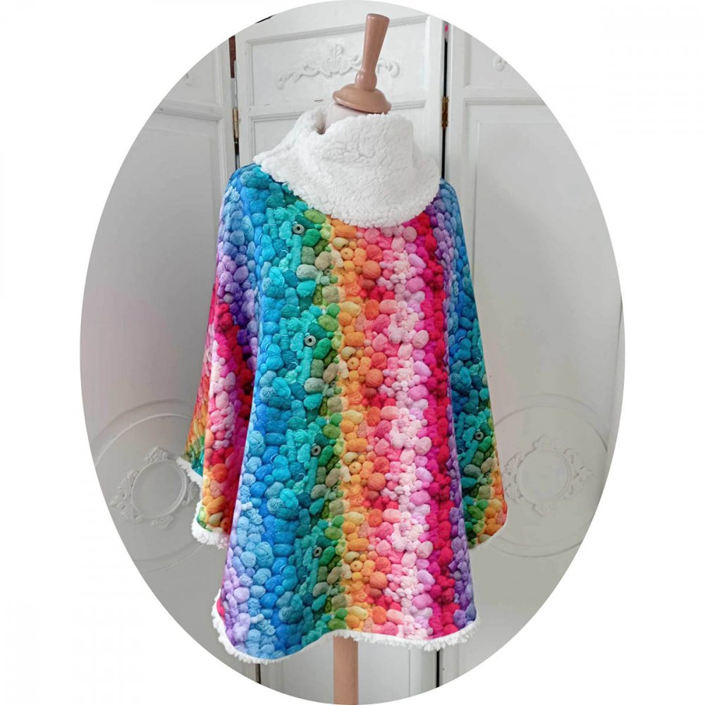 Poncho imprimé arc en ciel coloré et doublure moumoute