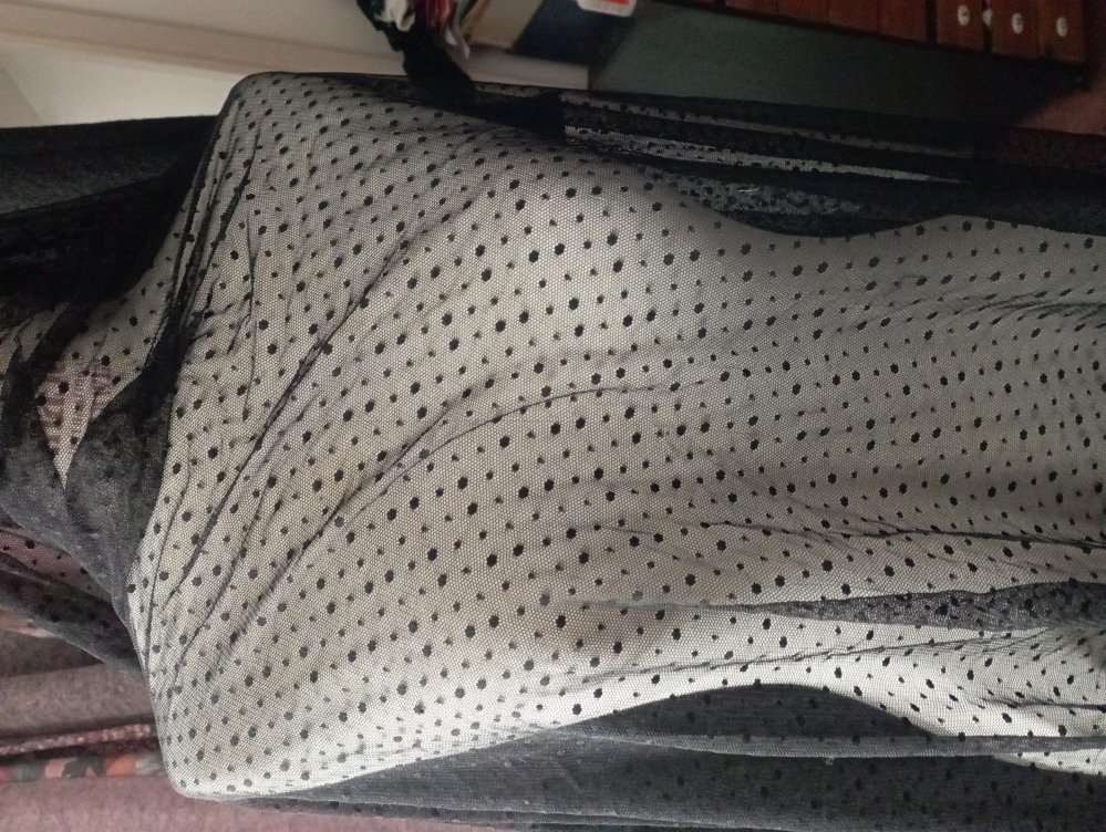Jupe demi-cercle en satin de coton noir (longueur 55cm) et tulle plumetis noir (longueur 60cm), sur mesure pour Agnès. Tour de taile 72cm.