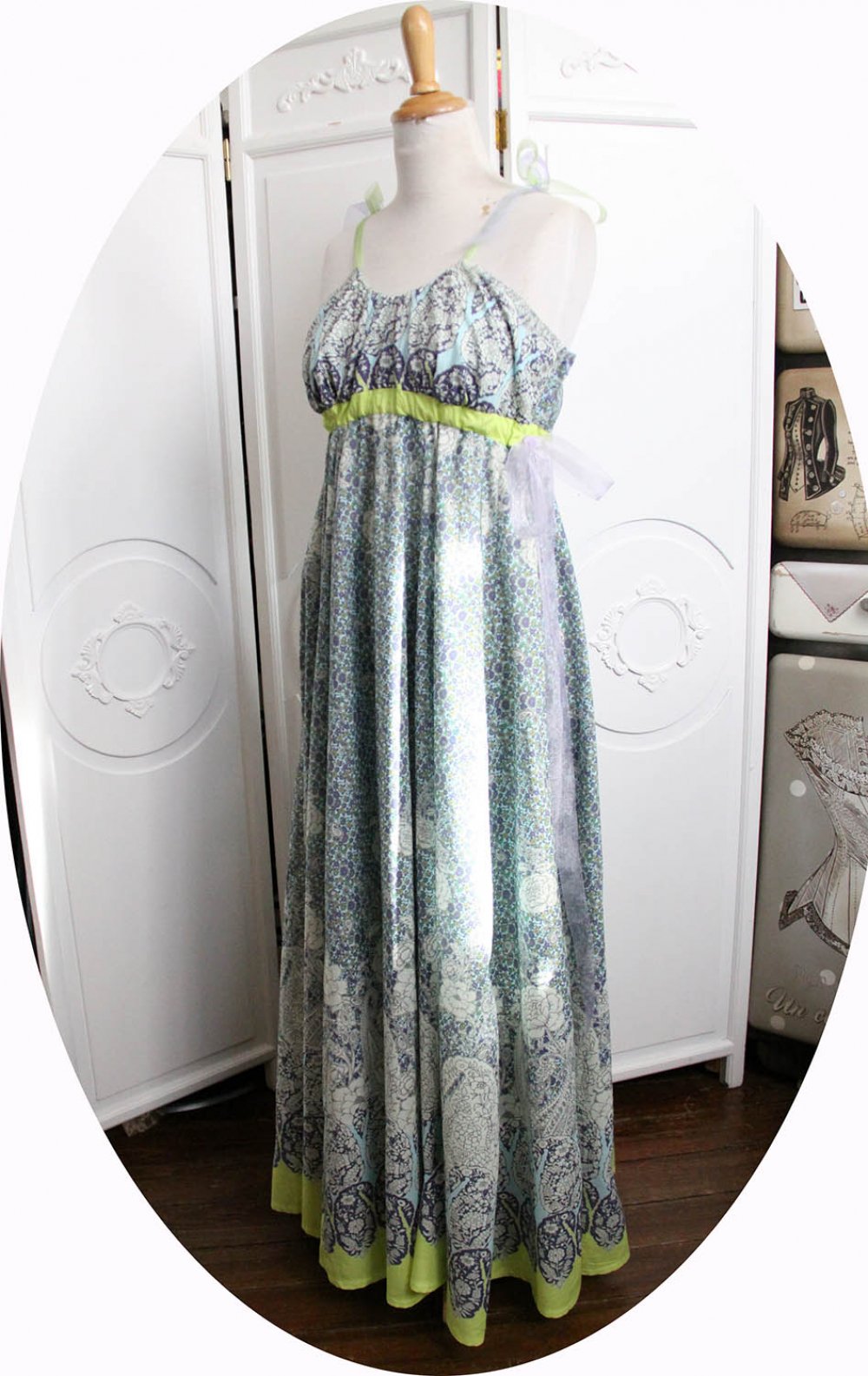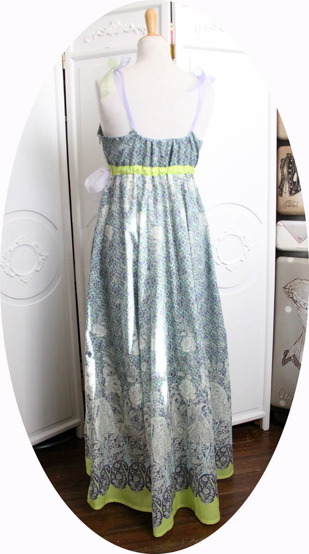 Une robe longue avec une taille empire, un buste ajustable et une partie jupe longue et ample.
