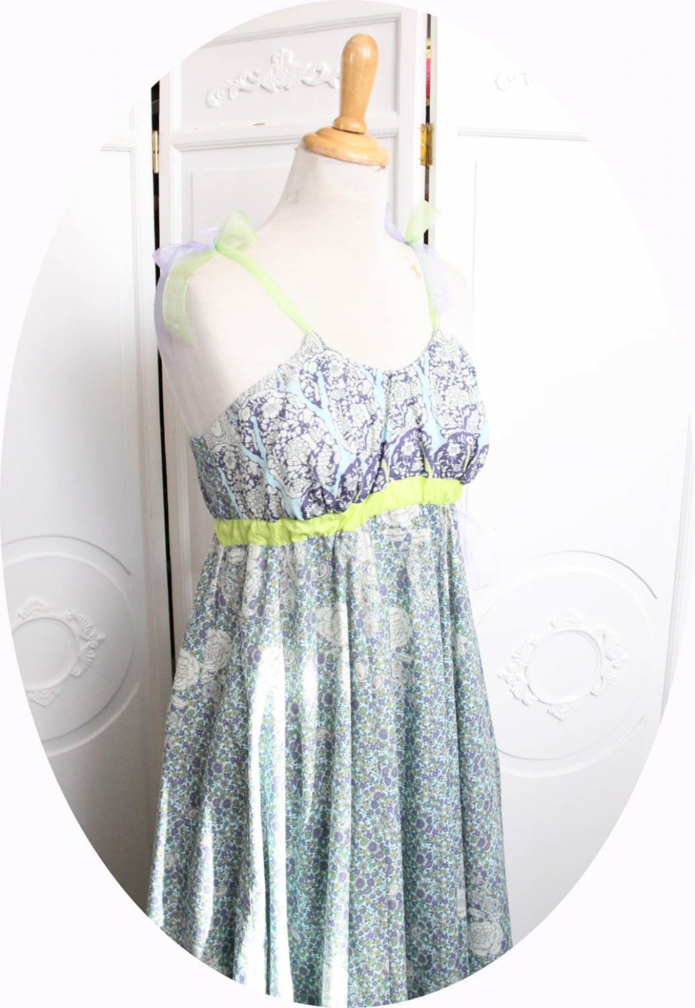 Robe longue et évasée en coton léger dans les tons bleu/vert.