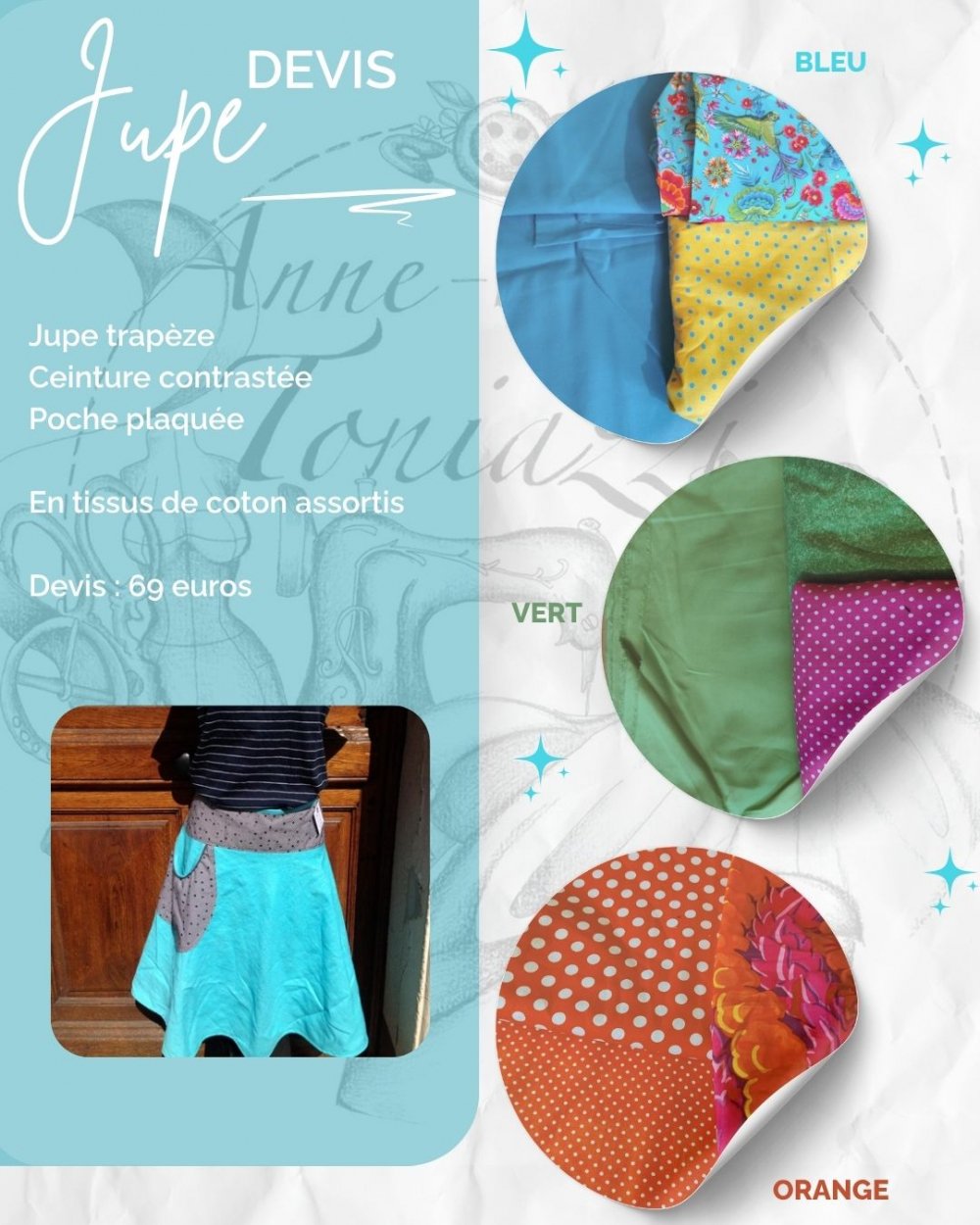 Acompte pour jupe en coton orange, selon nos échanges.