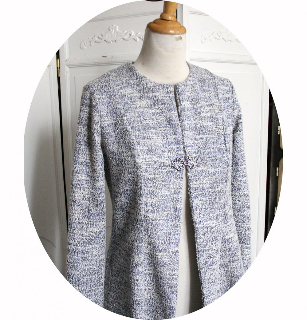 J'ai créé cette veste pour les femmes qui aiment les pieces classiques et élégantes, comfortables et faciles a porter. Cette veste ira aussi bien avec un pantalon de tailleur, sur une robe ou avec un jean.
